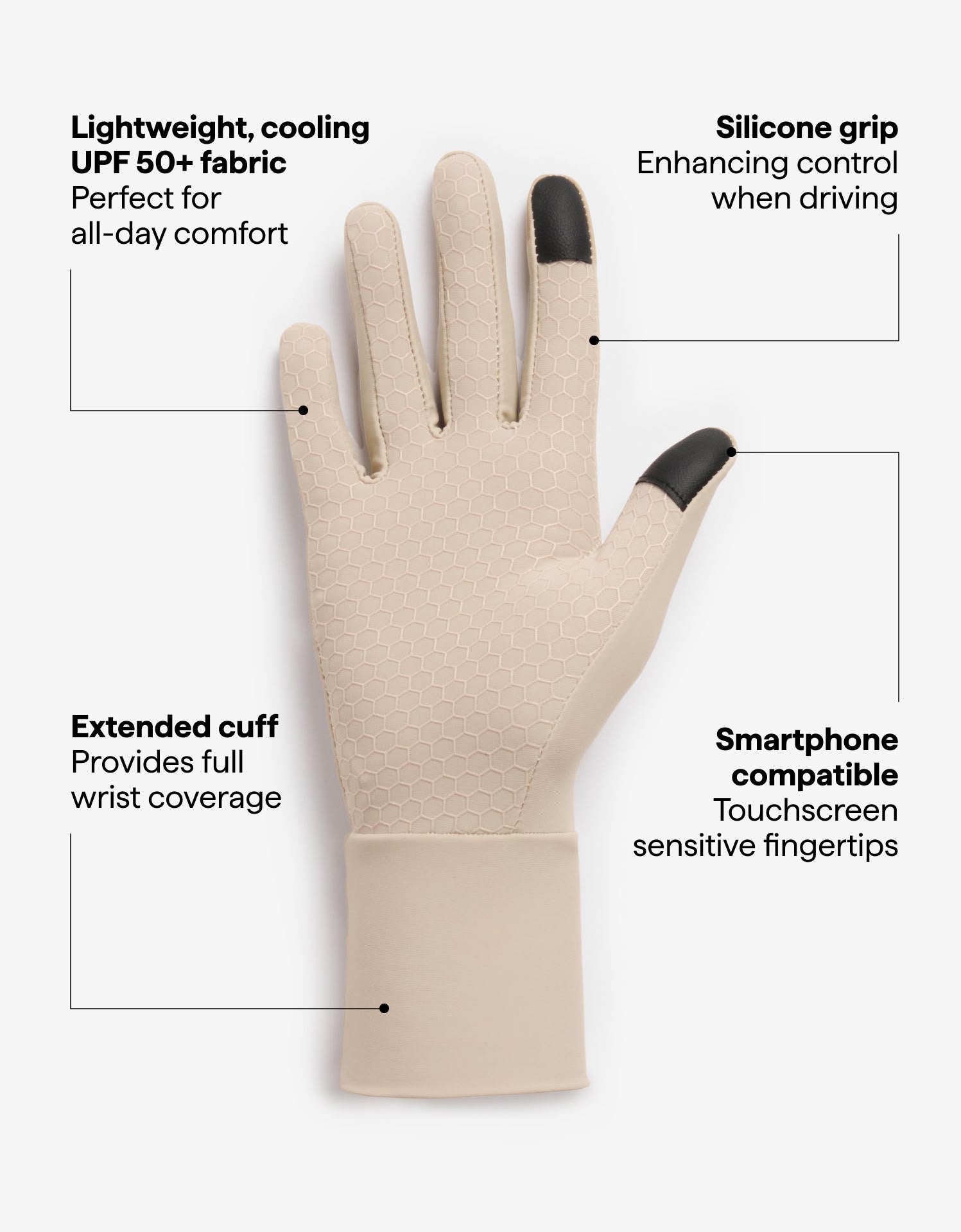 Our Men's Sun Protective Driving Gloves combine superior UPF sun protection with breathable, cooling fabric and a silicone palm grip. Designed for comfort and control on daily commutes or long road trips.