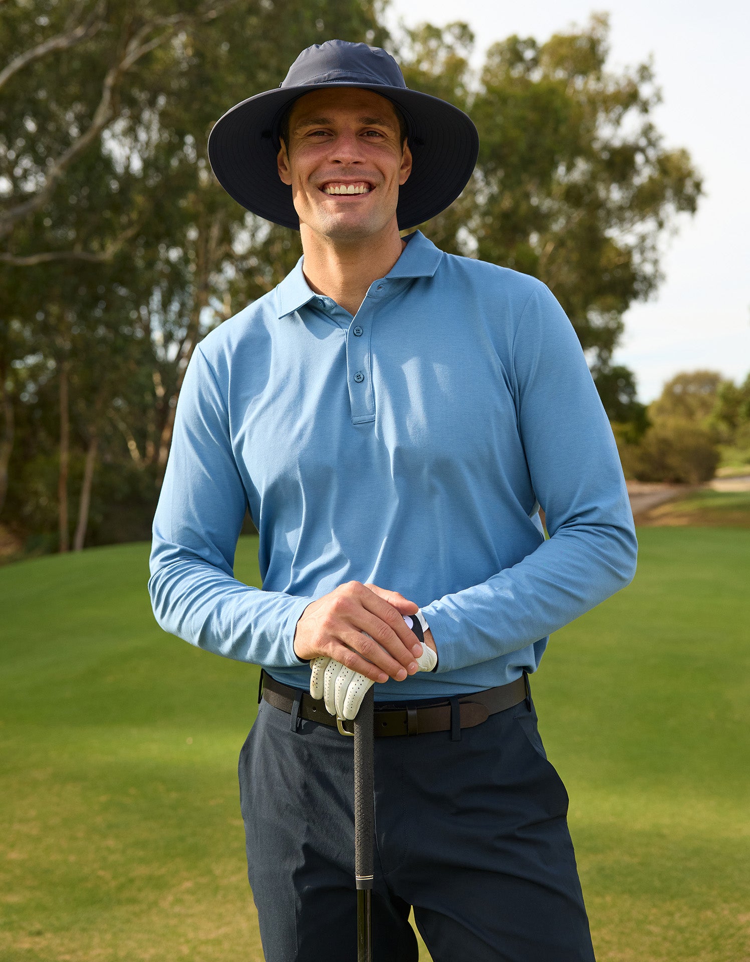 Our UPF 50+ Long Sleeve Sun Protective Polo Shirt for Men is made from a soft, natural cotton-bamboo blend that’s breathable, anti-odour, and gentle on the skin. Recommended for sensitive skin, it’s ideal for long days in the sun, including playing golf, walking, travel, and leisure.
