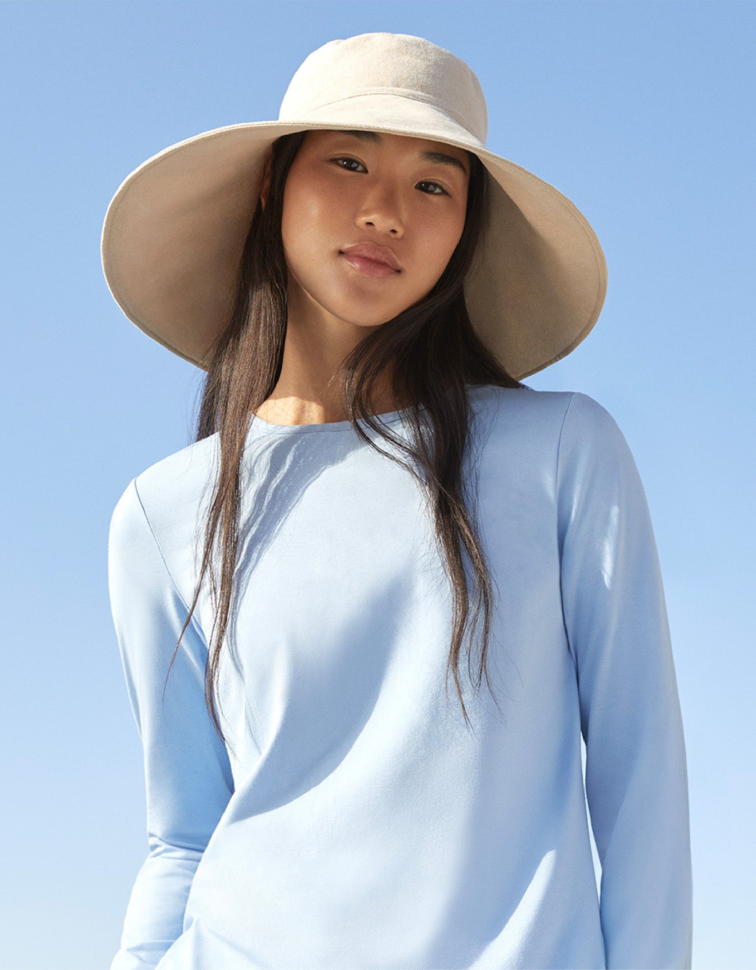 Ultra Wide Cotton Linen Sun Hat reduces skin ageing from sun exposure