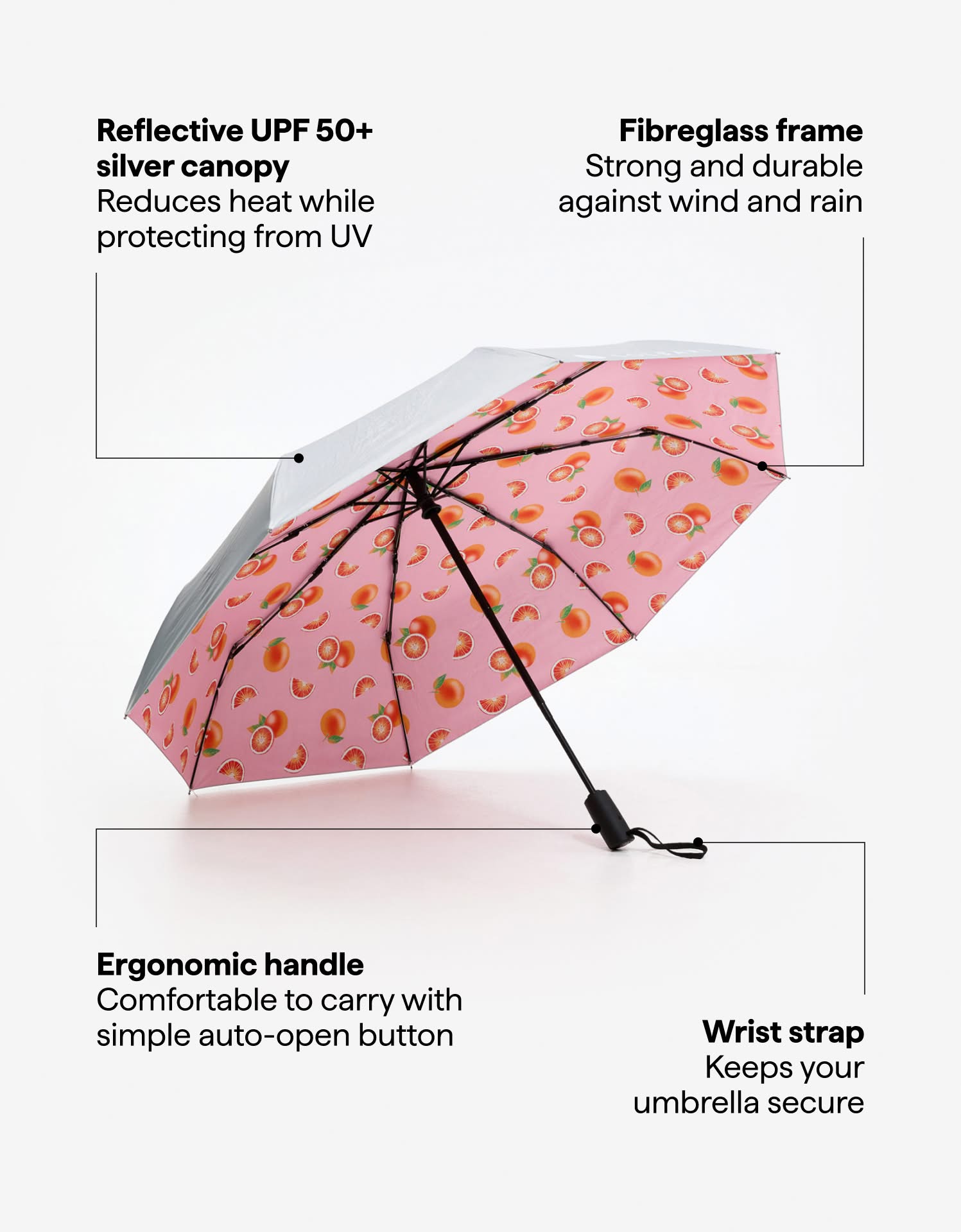 Known as the 'sunscreen umbrella', this compact design is made for everyday sun protection. With a generous arc and UPF 50+ silver coating, it shields you from harmful UV rays while keeping you cool in style.